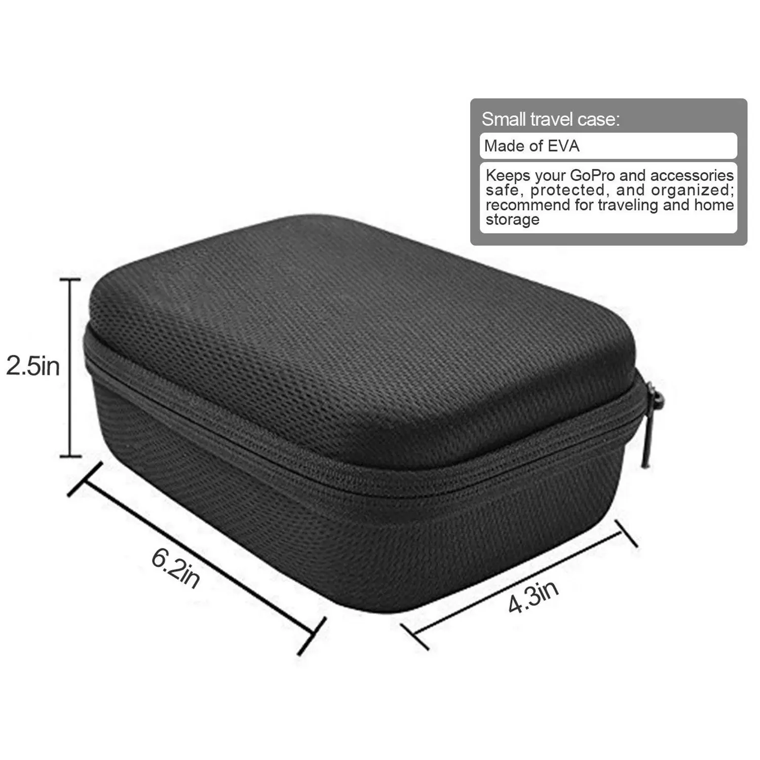 Small travel case: 17*12*7cm, made of EVA, keeps your GoPro and accessories safe, protected, and organized; recommend for traveling and home storage.