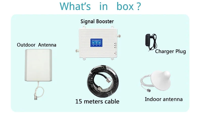 1. Интеллигентая (ый) ЖК-дисплей указать сигнала в режиме реального времени статус 2. Освещение: более чем 500sqm без преград 3. Подходят модели: GSM 2G 900 МГц (полоса 8)/ WCDMA 3G 2100 МГц полоса 1 / DCS 4G 1800 МГц (группа 3) 4. Отличный чехол, просты в установке 5. Весь набор товар с наружная антенна, Внутренняя антенна, 15 м кабель