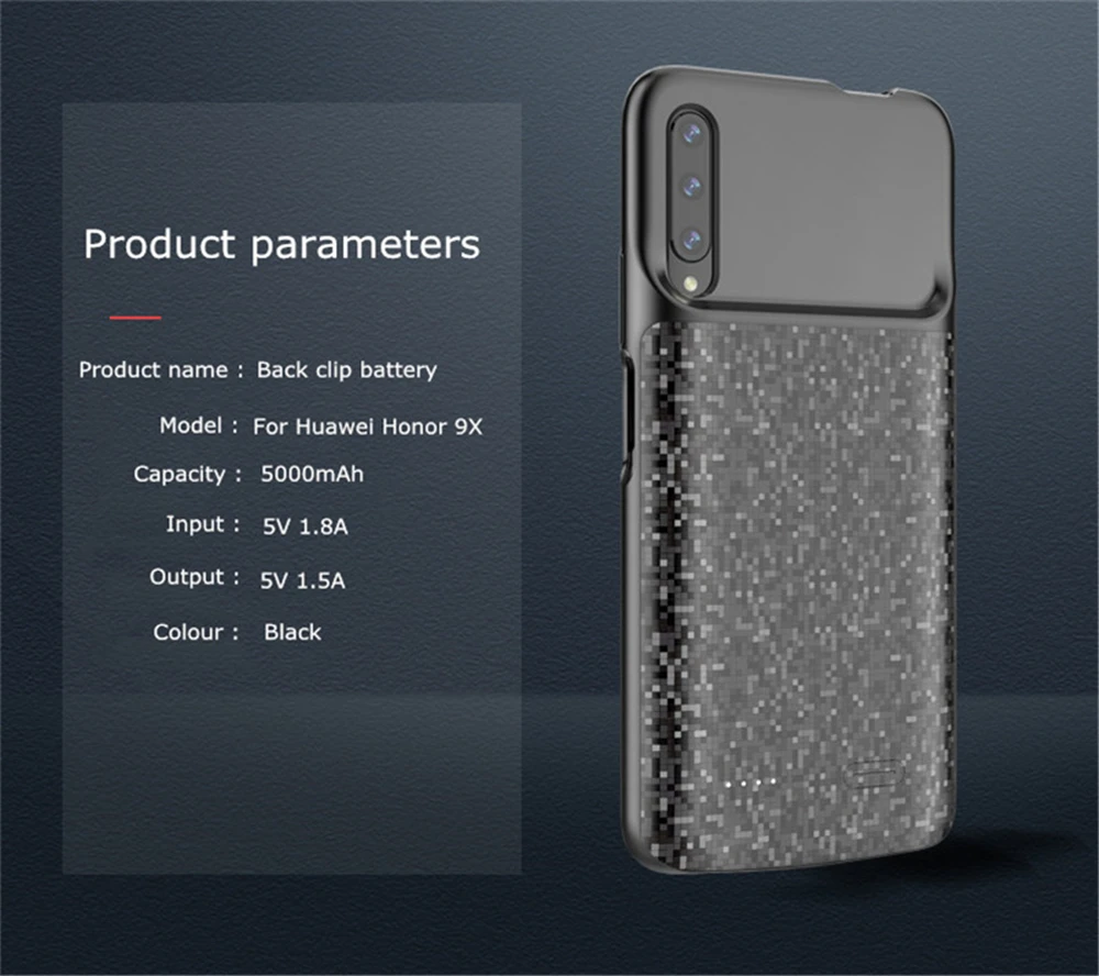 Для Huawei Honor 9X чехол для зарядного устройства 5000 мАч Внешнее запасное зарядное устройство чехол для аккумулятора чехол для зарядного устройства