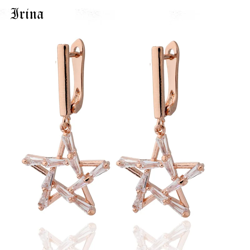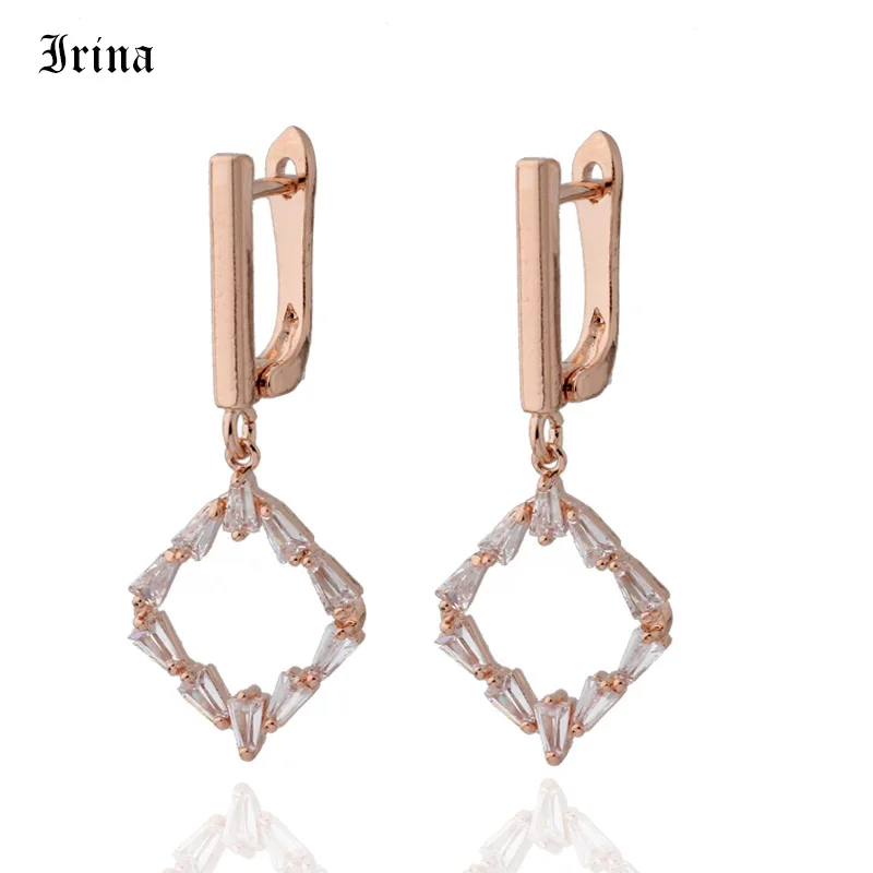 Новинка 585 г. висячие серьги цвета розового золота с фианитом 5 стилей для женщин - купить