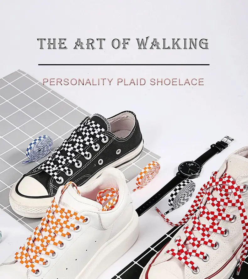 Купить Пара модных двухцветных шнурков в клетку подходящих для всех типов обуви 6 цветов