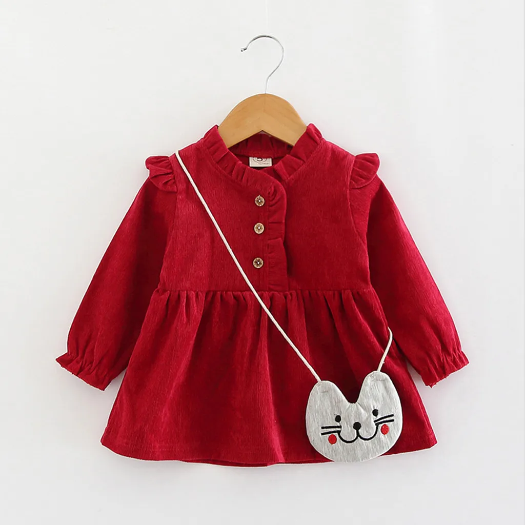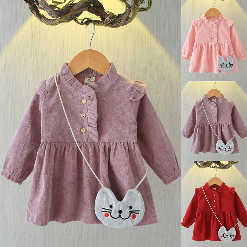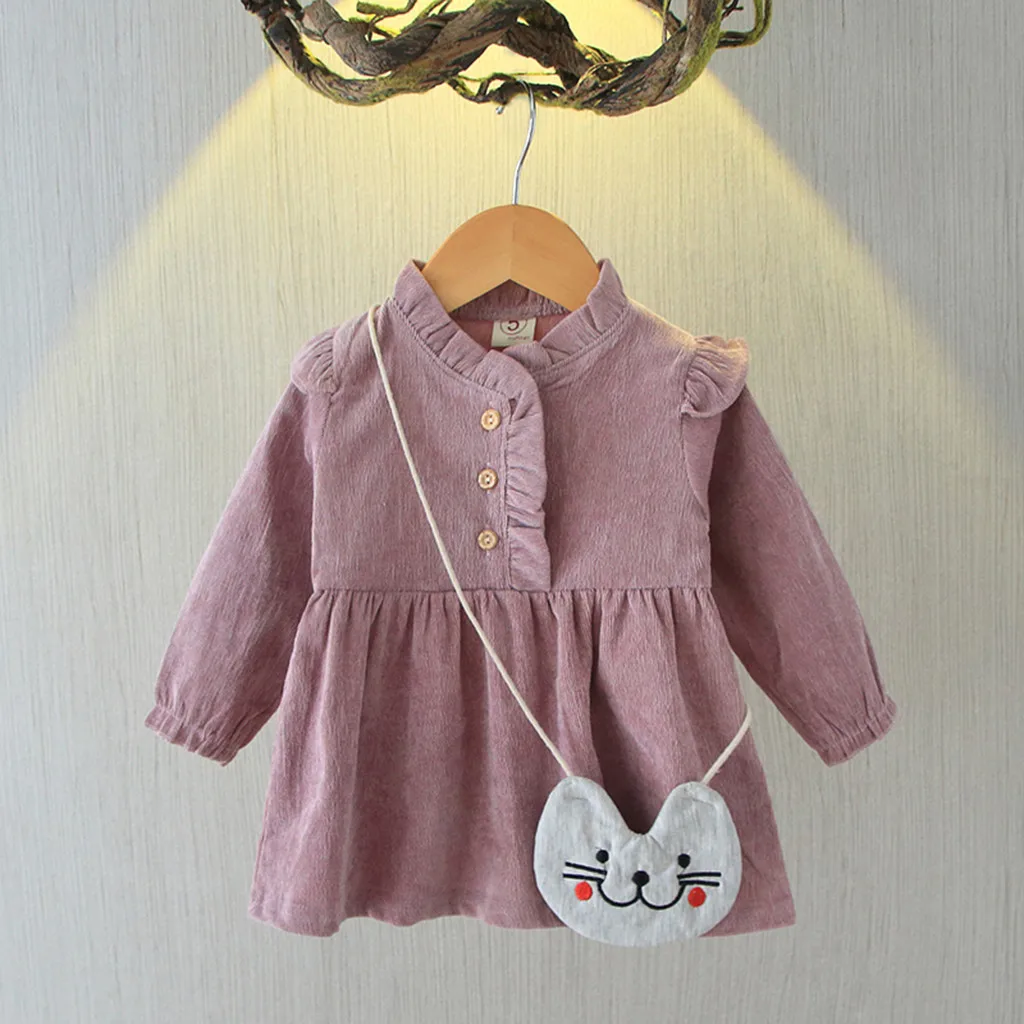 Однотонное платье принцессы с оборками и длинными рукавами для маленьких девочек + сумка в комплекте