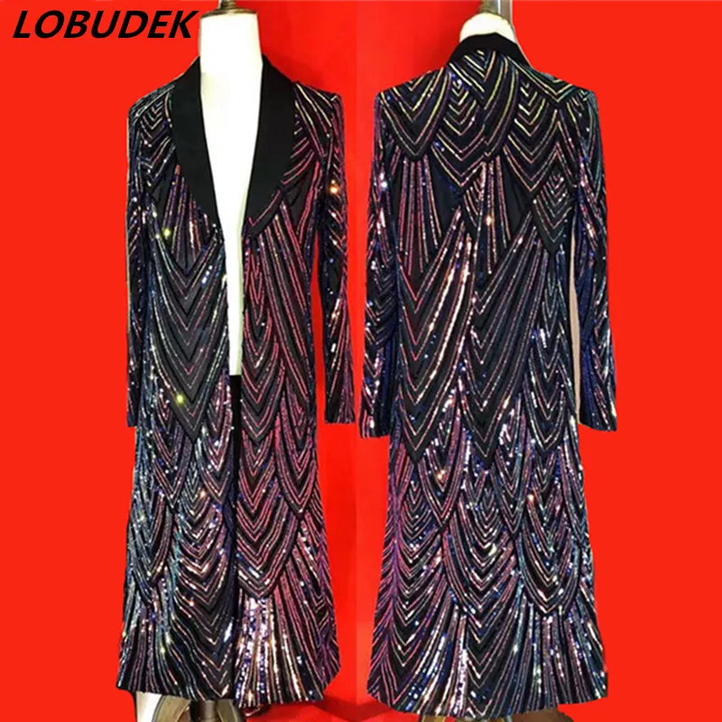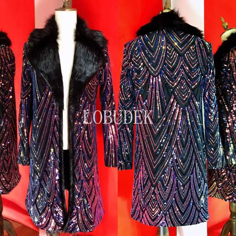 Мужской пурпурный Тренч с блестками длинное пальто на заказ для выступлений - купить
