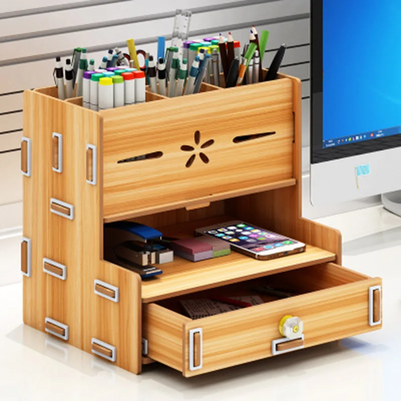 Простая и практичная коробка для хранения, деревянные закладки, многофункциональная настольная стойка, офисный Органайзер