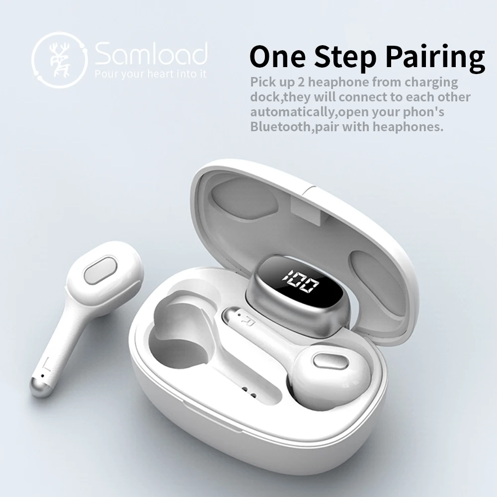 Отзывы о Беспроводные наушники Samload Bluetooth 5.0 с LED-дисплеем для отображения уровня заряда и зарядным футляром iPhone Samsung Sony др