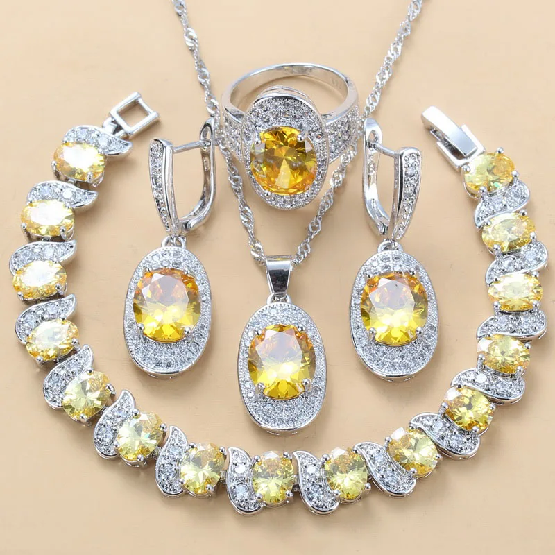 Женский ювелирный комплект из жёлтого циркона серебристого цвета Украшения и - купить
