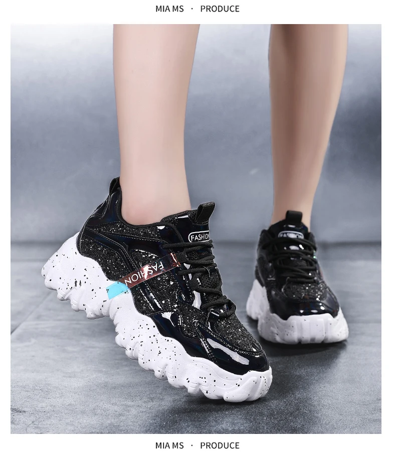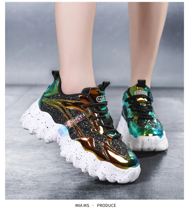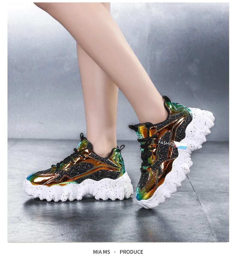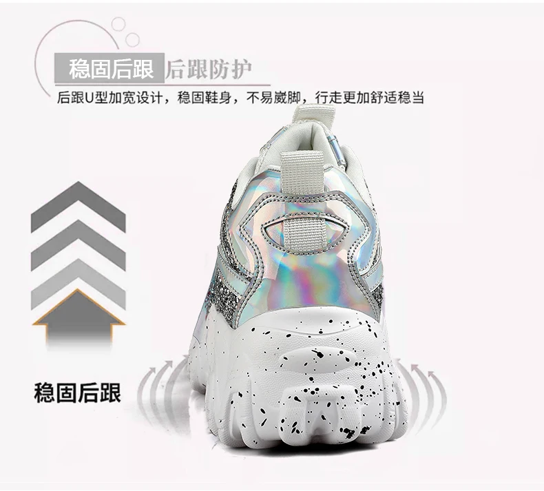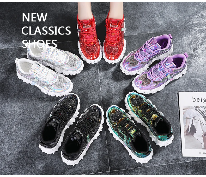 Отзывы о Женские кроссовки с блестками дышащие круглым носком на массивной подошве для