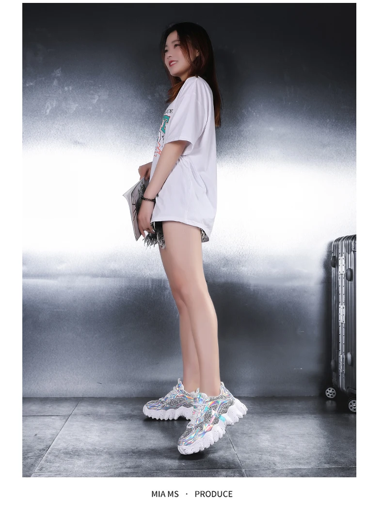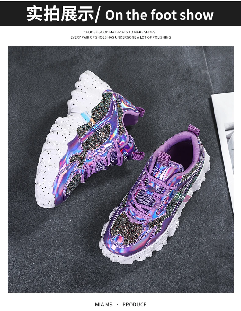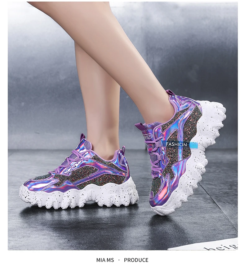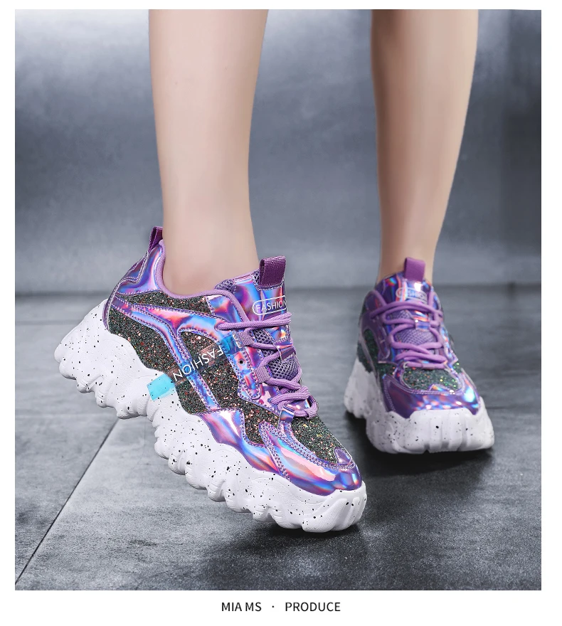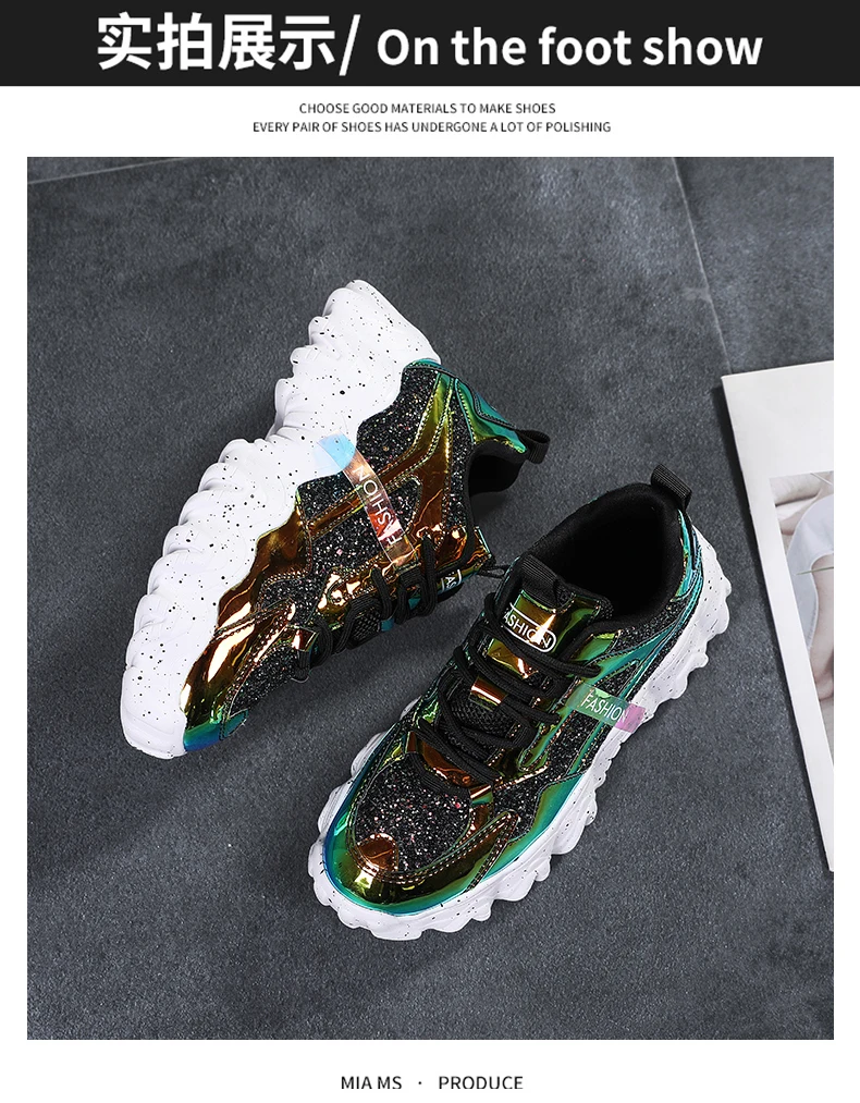 Отзывы о Женские кроссовки с блестками дышащие круглым носком на массивной подошве для