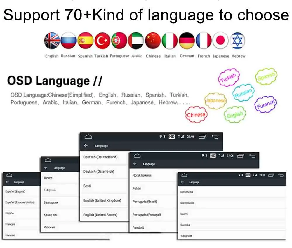 Если вам нужен Подарочный пакет, пожалуйста, оставьте нам сообщение: 16G TF карта 1. Система: Android 9 2. Процессор: MTK/RK 3. Оперативная память: 2 ГБ/4 Гб оперативной памяти DDR3 4. ПЗУ: 16 Гб/32 ГБ/64 ГБ 5. Платформа: Cortex-A9 1,6 ГГц 6. Рамки: Cortex-A9 32 бит 7. Разрешение: HD 1024*600 емкостный сенсорный экран/1080 P HD видео 8. DSP + ips: включая ips экран и функцию DSP. 9. Поддержка: DVR OBD2 DAB + зеркальный экран камеры заднего вида для android и iphone 10. Wifi: встроенный WiFi адаптер 11. Чип усилителя: TDA7850; 4*50 Вт макс (превосходный звук) 12. Радио тюнер IC: S T 7786, низкий IF тюнер, высокая производительность 13. Время быстрой загрузки (2-е время): около 3 s, время холодной загрузки: около 15-25s Quad core Четырехъядерный процессор 16 Гб ПЗУ 2 Гб оперативной памяти Новая система Android Восемь ядер Процессор Восьмиядерный процессор 32 Гб ПЗУ 4 Гб оперативной памяти Опция DSP повышает качество радио Самый быстрый системы Часто задаваемые вопросы: 1. Поддержка оригинального управления рулевого колеса автомобиля, вы можете использовать его для управления треком, громкостью и т. Д. 2, более простой интерфейс и дизайн пользовательского интерфейса делают вашу работу более практичной. 3, с Wi-Fi интегрированной, не беспокойтесь о том, чтобы не получить доступ к Интернету. 4. Поддержка нескольких языков, таких как Россия, английский, Германия, Франция, Испания и т. Д.