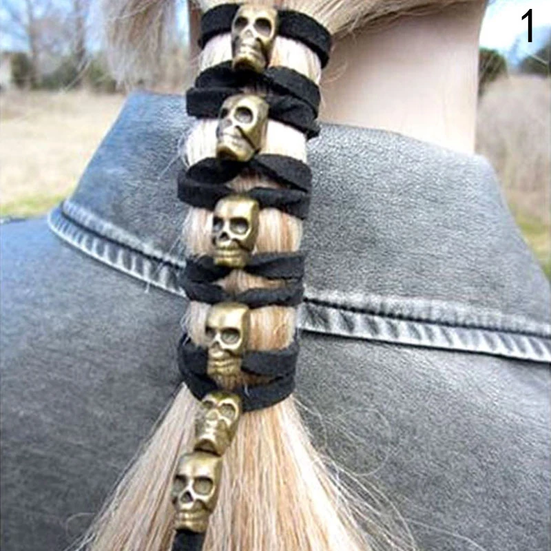 Отзывы о Fashion Women Hair Rope Vintage Punk Skull Hairband Ponytail Headwear DIY Accessories Antique Pendants Floral Barrettes Acrylic