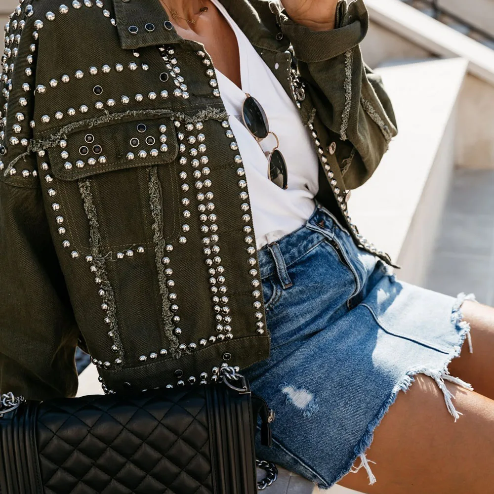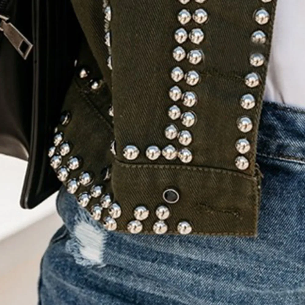 Осенняя Женская куртка с заклепками в стиле Харадзюку, крутая короткая черная джинсовая куртка, Студенческая Базовая куртка, наряд с длинным рукавом, куртка на молнии для женщин