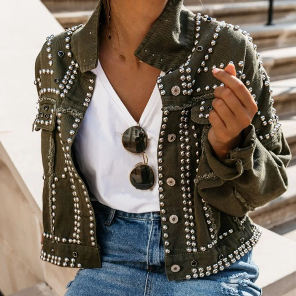 Купить Осенняя Женская куртка с заклепками в стиле Харадзюку пальто отворотом короткое