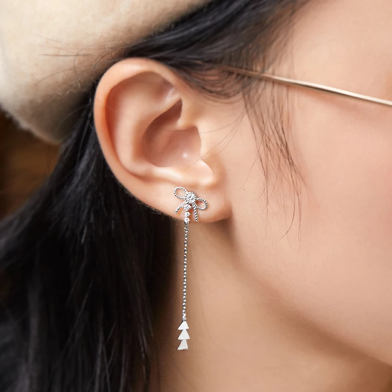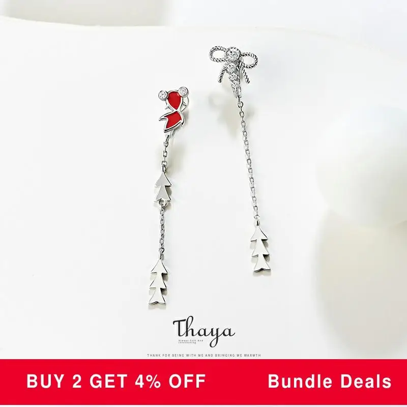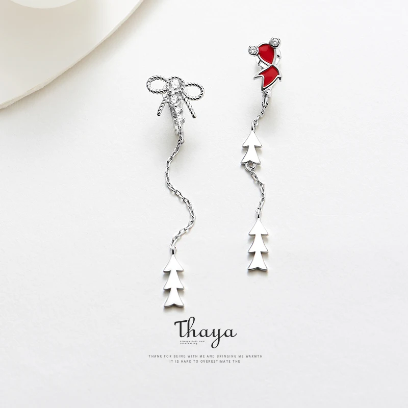 Thaya, корейский стиль, асимметричные серьги с бантом, 925 серебряные серьги, модные серьги-капли для девочек, специальное ювелирное изделие