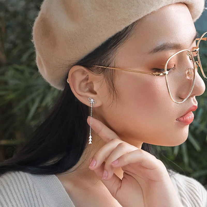 Купить Тайя корейский стиль асимметричные серьги с бантом 925 серебряные Модные сережки