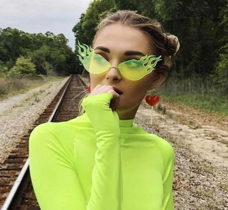 Отзывы о Женские солнцезащитные очки без оправы JackJad уникальные в форме пламени стиле Future