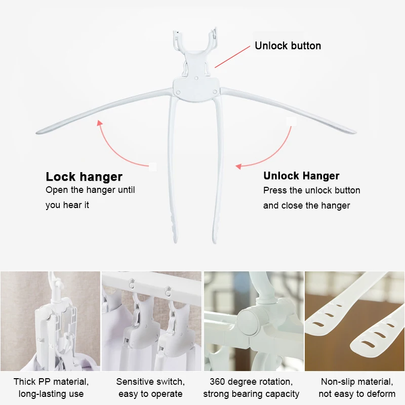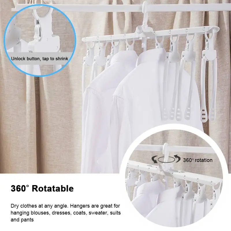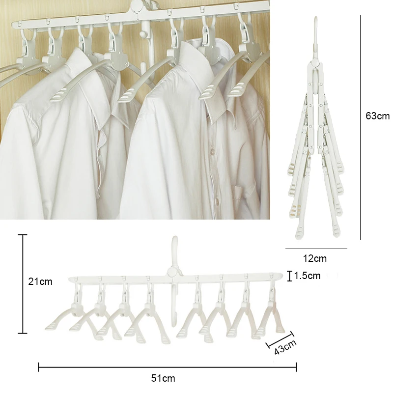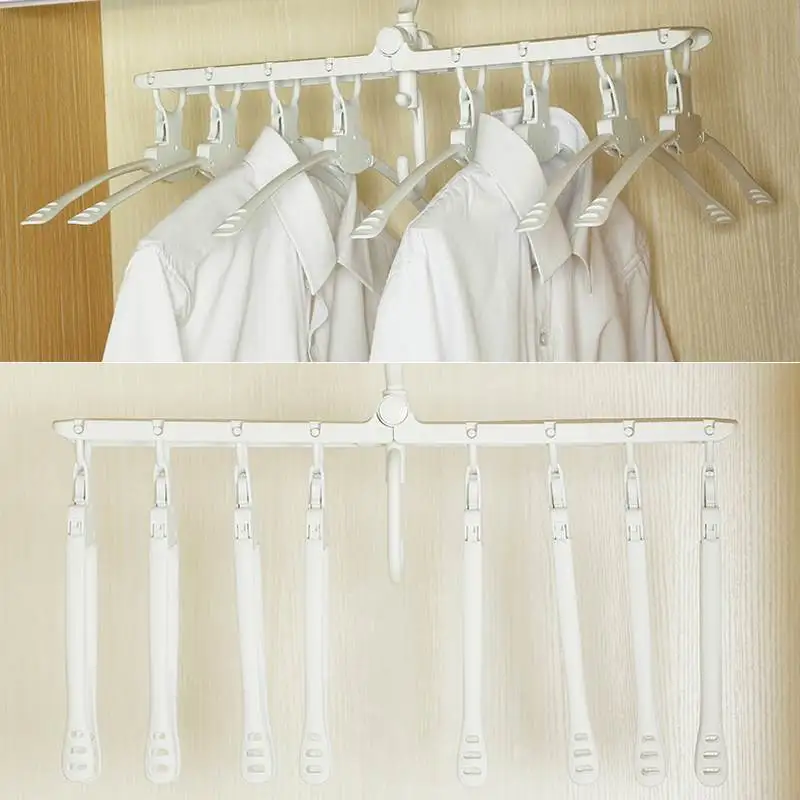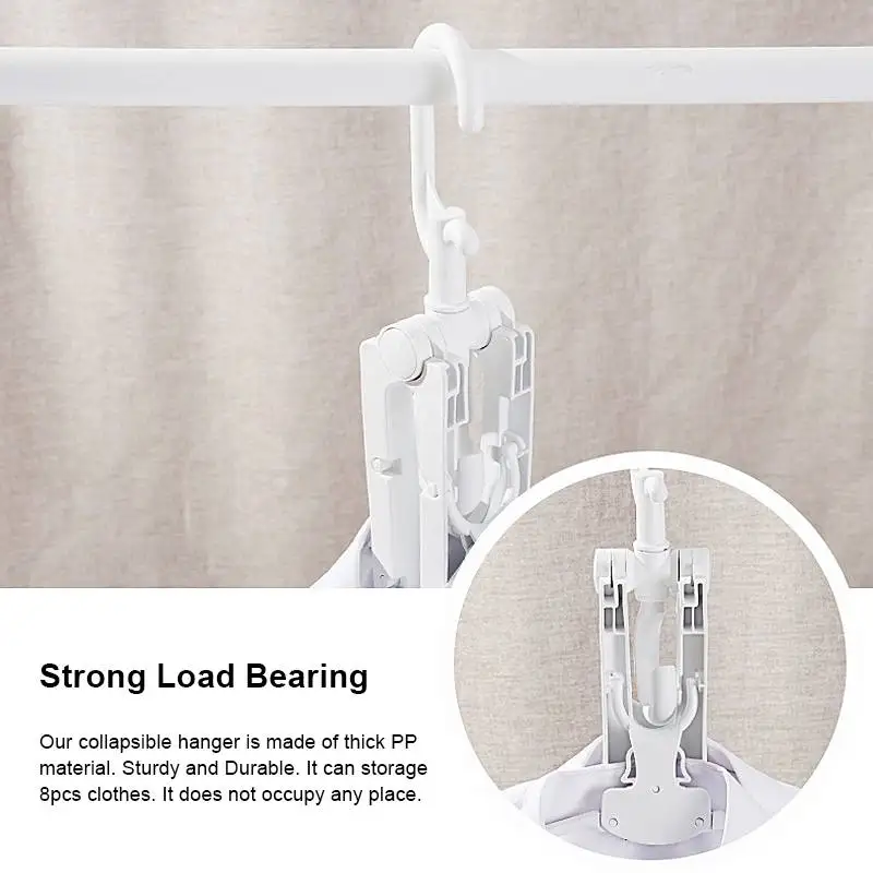 Особенности: -【Пространства SAVING】Эта Многофункциональная вешалка складная. Это может сэкономить тонну горизонтального пространства и сохранить вашу одежду аккуратной и организованной. -【Сильная нагрузка подшипник】Наша складная вешалка изготовлена из толстого полипропиленового материала. Прочный и долговечный. Можно хранить 8 штук одежды. Он не занимает ни одного места. -【Нескользящие HANGERS】Нескользящие вешалки легко хранят одежду, защищают воротник. Подходит как для влажной, так и для сухой. Простой в использовании. -【Подходит CLOTHES】Многофункциональные складные вешалки отлично подходят для подвешивания блузок, платьев, пальто, свитеров, костюмов и брюк. Отлично подходит для группы, как одежда вместе.