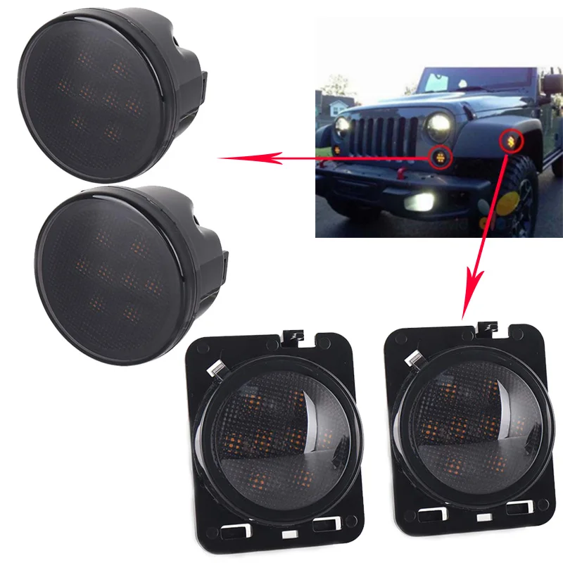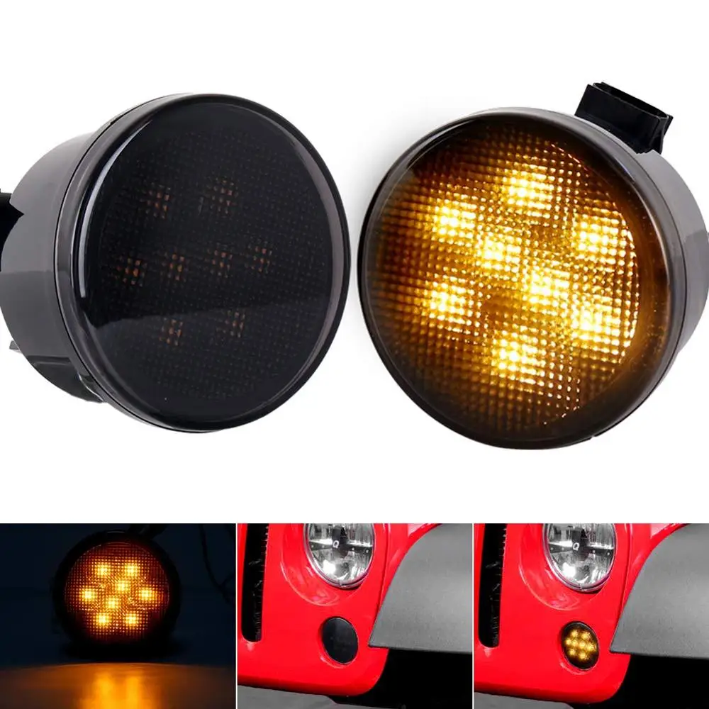 Дымовой объектив Желтый светодиодный сигнал поворота + КРЫЛО боковой маркер парковочный светильник в сборе для Jeep Wrangler JK Unlimited 2007-2017