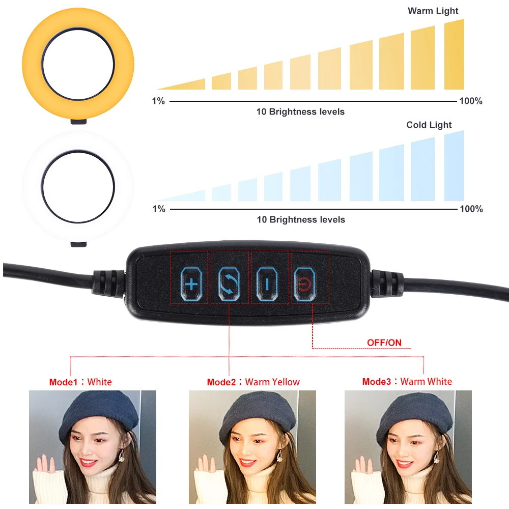 1 х 16 см светодиодный кольцевой светильник 1x разъем 1x USB разъем 1x Зажим с держателем для телефона 1 штатив как на картинке