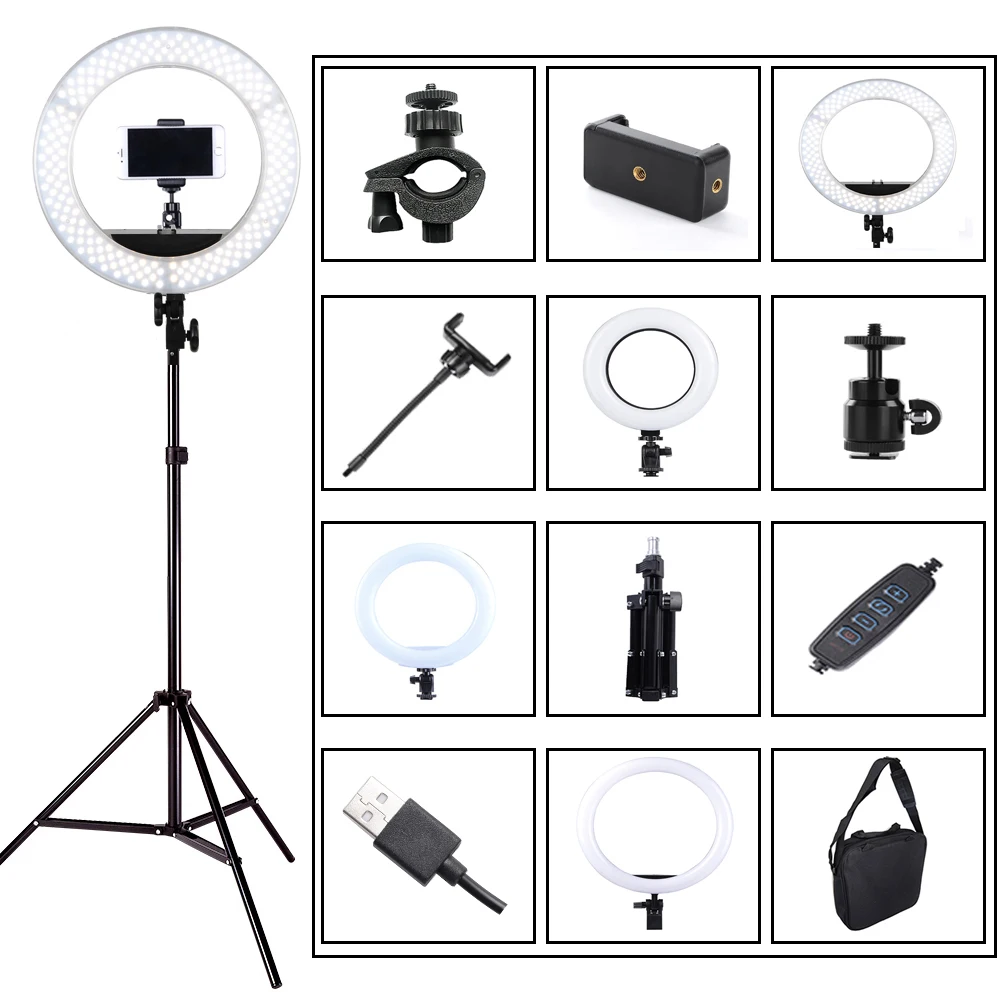 1 х 33 см светодиодный кольцевой светильник 1x разъем 1x штекер 1 шаровая Головка 1x держатель для телефона 1x сумка для переноски