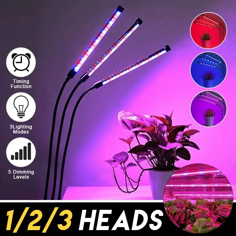 AUGIENB 1/2/3-Head Grow светильник, растительный светильник s для комнатных растений, 20/36/60 светодиодный светильник, полный спектр, 20 Вт/36 Вт/60 Вт