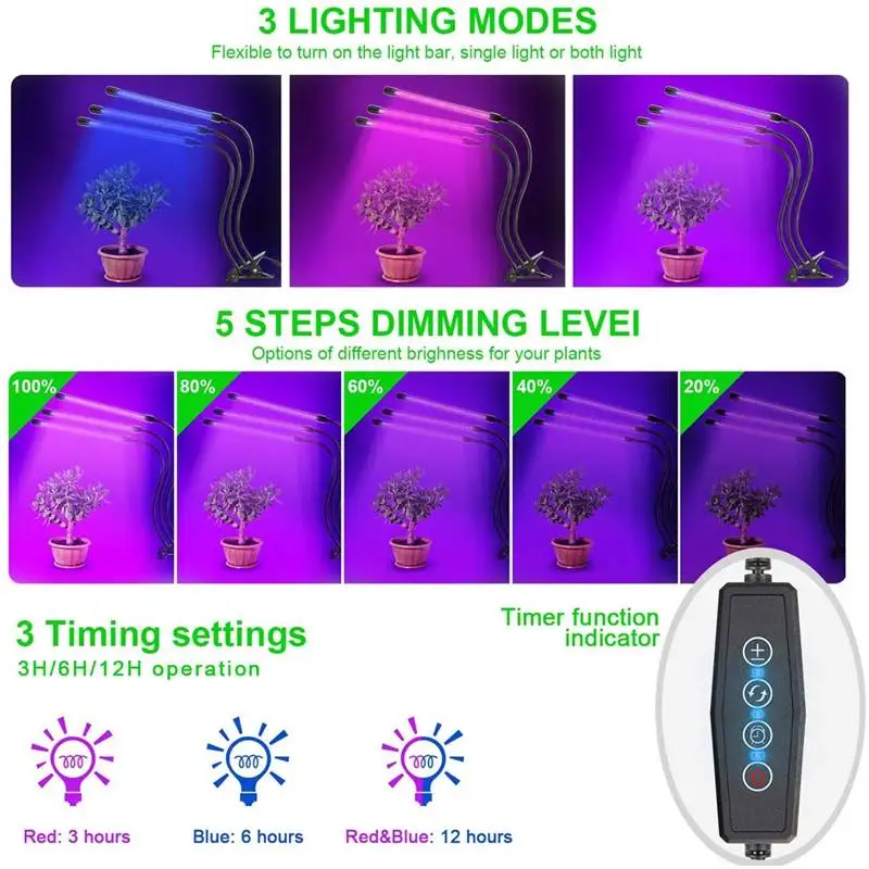 【Лучшее сочетание красный и синий светильник | 60 полный спектр LEDs】39 красных светодиодов в сочетании с 21 синим обеспечивают наиболее распространенный спектр светильник для роста комнатных растений. Будь то в помещении сада или коммерческой теплице, yoyomax grow lights сохраняет растения здоровыми и процветающими. 【3 режима переключения | 6 режимов затемнения3-головный растительный светильник, с 3 режимами переключения и 6 вариантами регулировки яркости, идеально подходит для всех видов ваших комнатных растений на всех растениях. Вы можете включить/выключить каждую руку индивидуально и изменить интенсивность светильник в зависимости от роста. 【Автоматическое включение/выключение | Время круговой памяти 】3 настройки времени позволяет сохранить Светильник на 3, 6 или 12 часов, гарантируя, что ваши заводы получить необходимое количество светильник ing на по-разному. Кроме того, при включенном подключении лампа для выращивания запоминает последние настройки и включится в то же время на следующий день. 【Гибкая гусиная шея | Прочная застежкаВращающиеся на 360 градусов шейки позволяют вам идеально разместить свет вокруг одного растения или одновременно выращивать больше растений. С противоскользящим зажимом, они достаточно прочные, чтобы держать свое положение для лучшего покрытия вокруг растений.