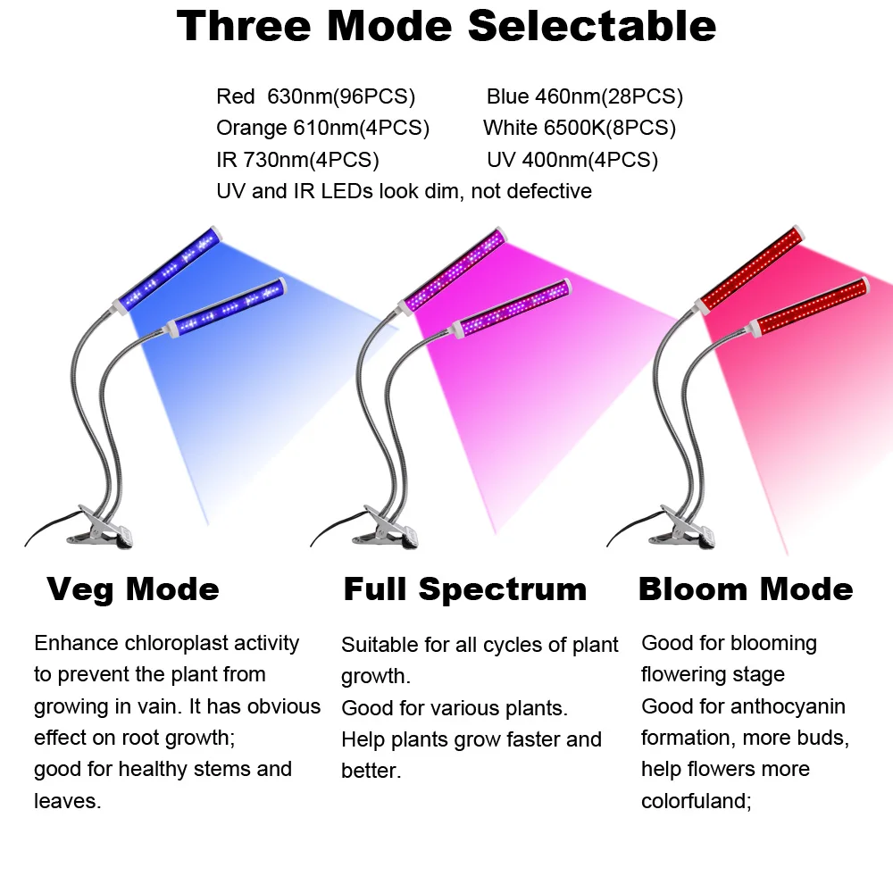 --- Светодиодный светильник для растений имеет функцию переключения 3 режимов, сопровождать ваше растение на всех этапах выращивания от сеялки, Вега, цветения, цветения до фруктов. Dimmable функция позволяет регулировать светильник интенсивности для 10 уровней от 10% to100 %. Идеально подходит для всех видов комнатных растений на всех этапах выращивания
