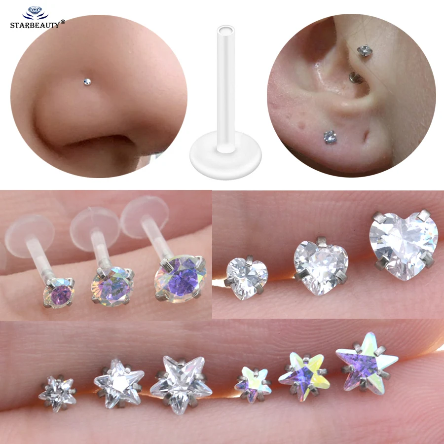 Купить Серьга-гвоздик с кристаллами для пирсинга декора звезды в форме сердца губ носа