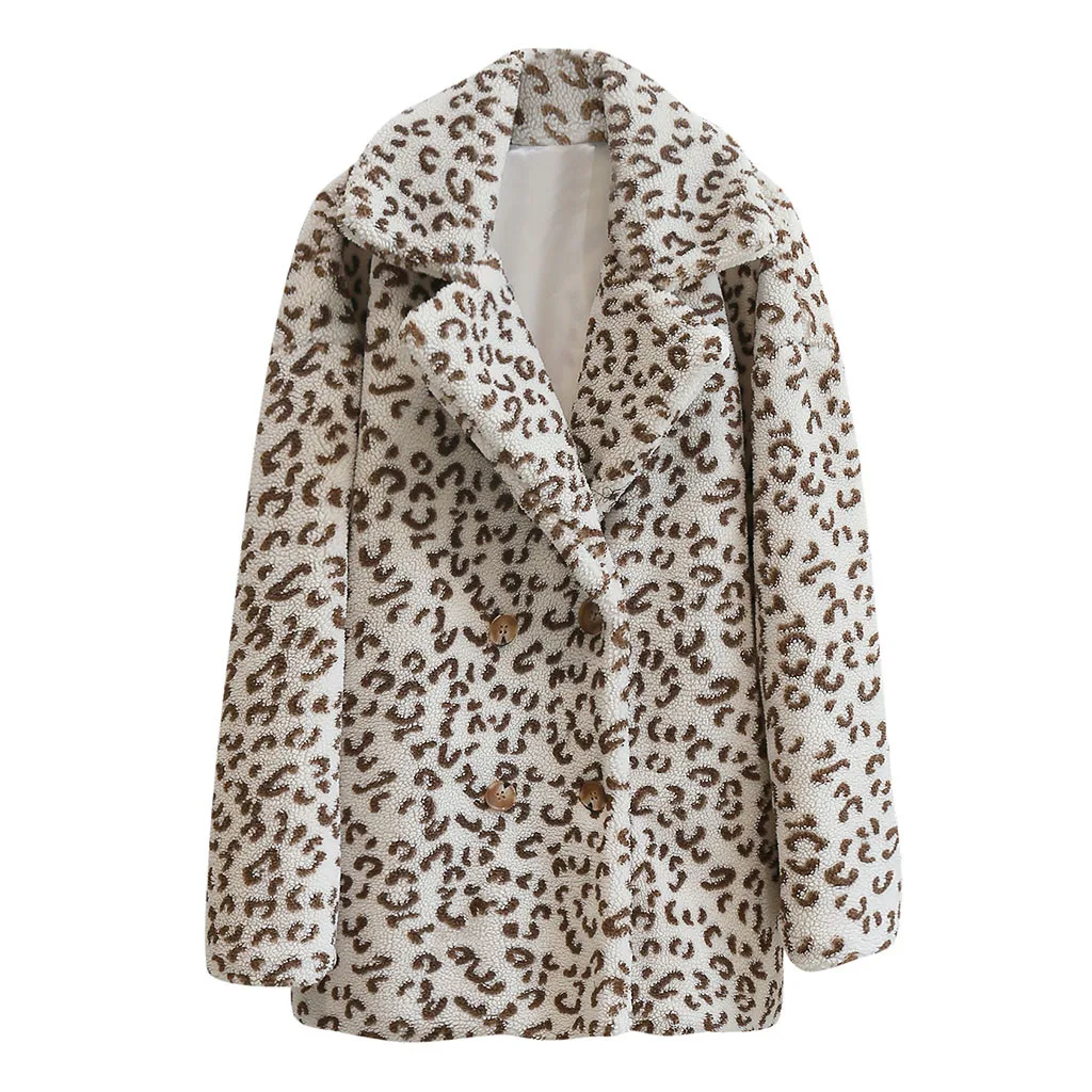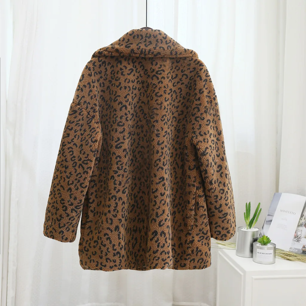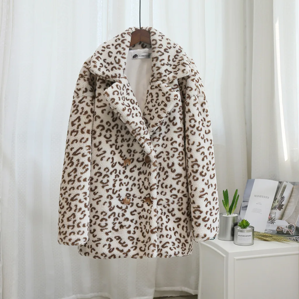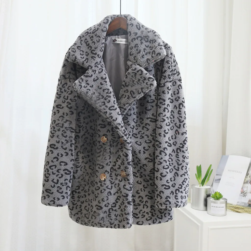 Женская модная осенняя и зимняя свободная короткая ветровка с леопардовым принтом, пальто из овечьей шерсти