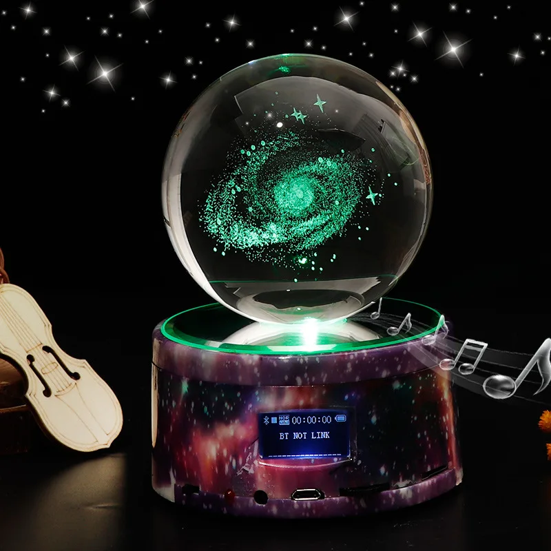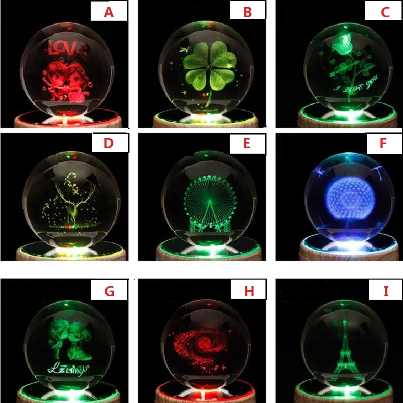 Специальное напоминание: существует 9 стилей хрустального шара, по умолчанию звезда, кристаллический шар, если вам нужны другие модели, пожалуйста, свяжитесь со службой поддержки клиентов и обратите внимание. Характеристики продукта: 1. Узор лазерной гравировки внутри хрустального шара; 2. Автоматическое преобразование 7 цветов света; 3. Хрустальный шар может автоматически вращаться, используя светильник музыкальной коробки; 4. Продукт может воспроизводить музыку через bluetooth и карту памяти; 5, встроенная перезаряжаемая литиевая батарея, варианты использования не ограничиваются; 6. Может использоваться пульт дистанционного управления; 7. Продукт должен быть оснащен зарядным кабелем, пультом дистанционного управления и инструкциями по эксплуатации; 8. Есть 9 стилей хрустального шара и 2 стиля основания, которые могут быть подобраны свободно. По умолчанию волосы звезда, кристаллический шар и основание. 9. Специальное напоминание: клиенты, которым нужны другие модели хрустальных шариков, пожалуйста, свяжитесь со службой поддержки клиентов и отметьте.