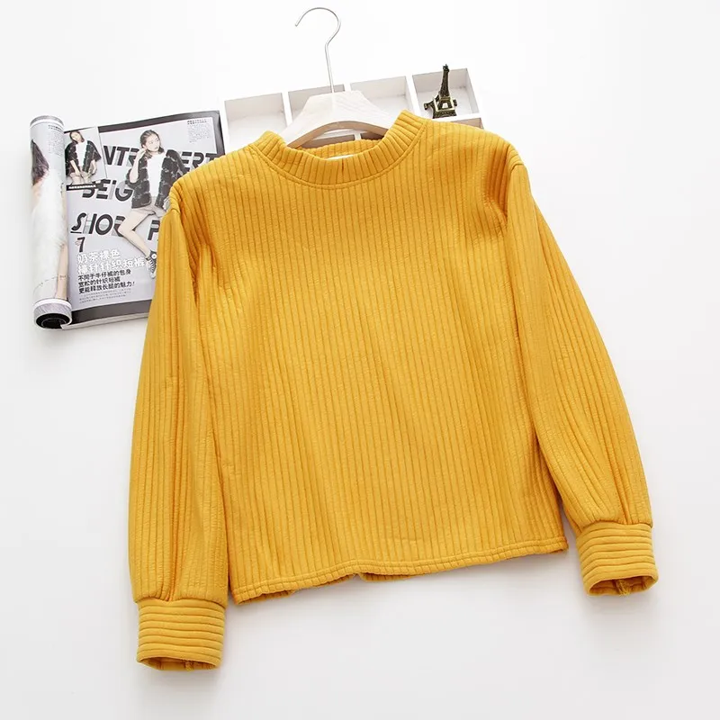 Женская одежда зима 2019 кавайный вельветовый свитшот длинный рукав в полоску - купить