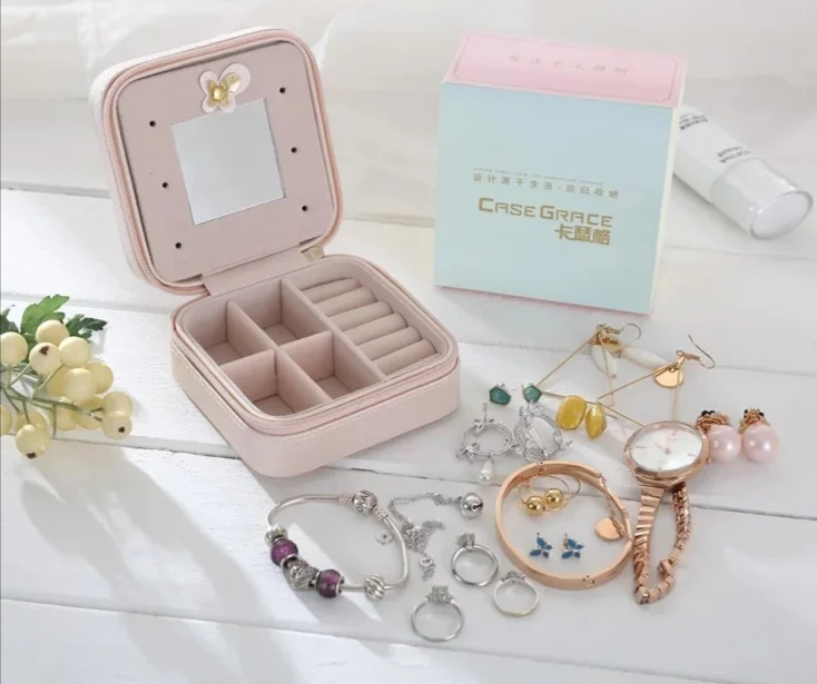 Дорожная коробка для хранения ювелирных изделий, органайзер для макияжа, шкатулка для ювелирных изделий, шкатулка, серьги, чехол для браслета, портативная упаковка ювелирных изделий, подарки на день рождения