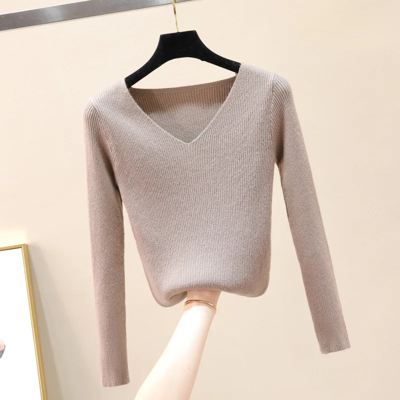 Отзывы о Осенне-зимний свитер 2019 базовый однотонный пуловер с V-образным вырезом женский