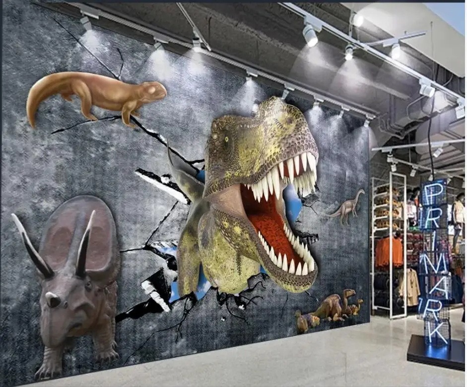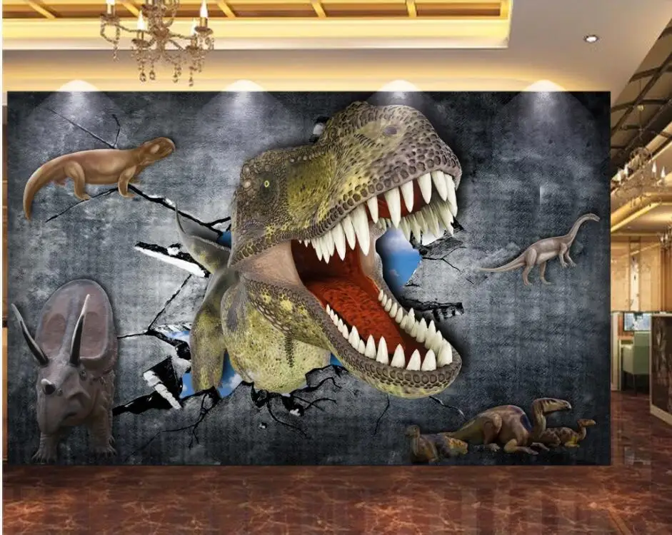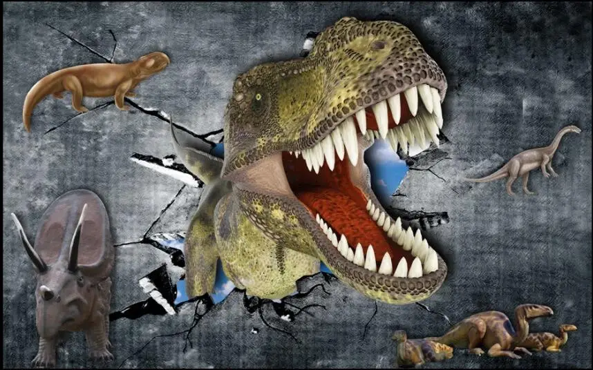 Купить WDBH 3d wallpaper custom photo mural Cartoon dinosaur breaking wall background home decor living room for walls 3 d | Обустройство