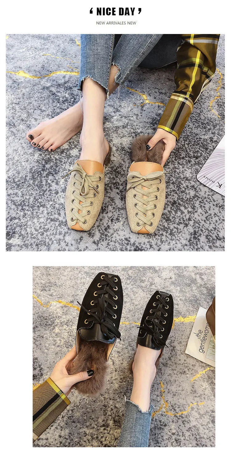 Отзывы о Новинка 2020 года Обувь из овечьей кожи с носком Модные тапочки на плоской подошве