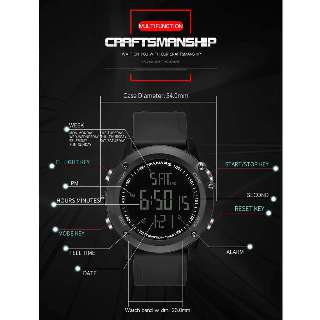 PANARS мужские цифровые наручные часы модные спортивные электронные часы 50 метров водонепроницаемые часы с календарем спортивные часы