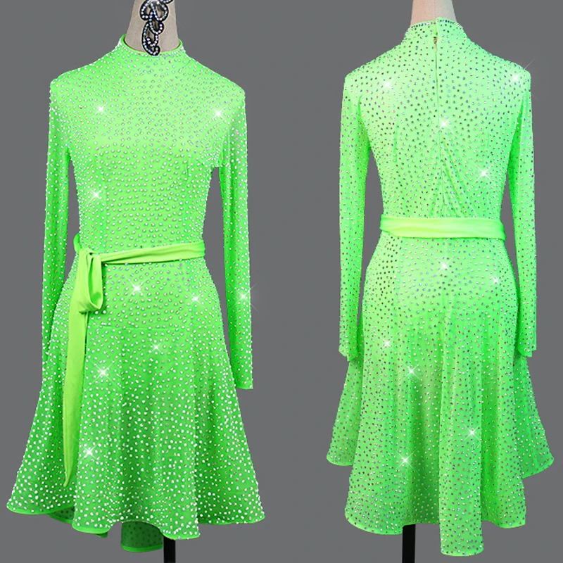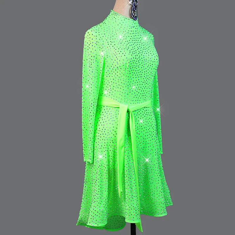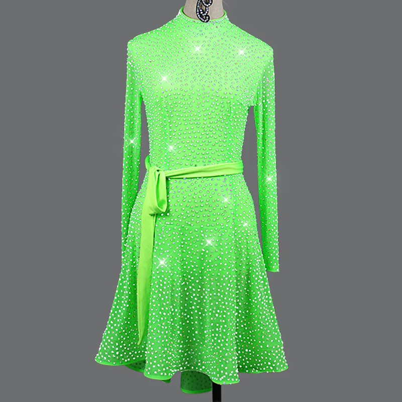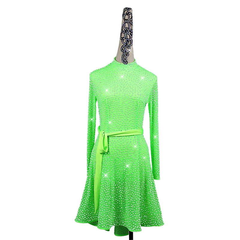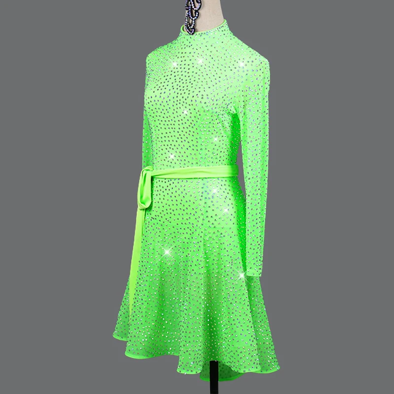 Купить Женское платье для латиноамериканских танцев ФЛУОРЕСЦЕНТНОЕ зеленое с длинным