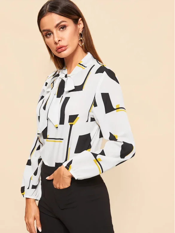 Купить Женская элегантная печатная квалифицированная блузка с длинным рукавом