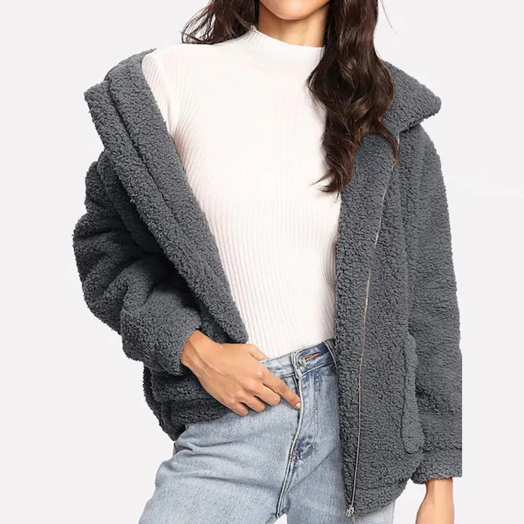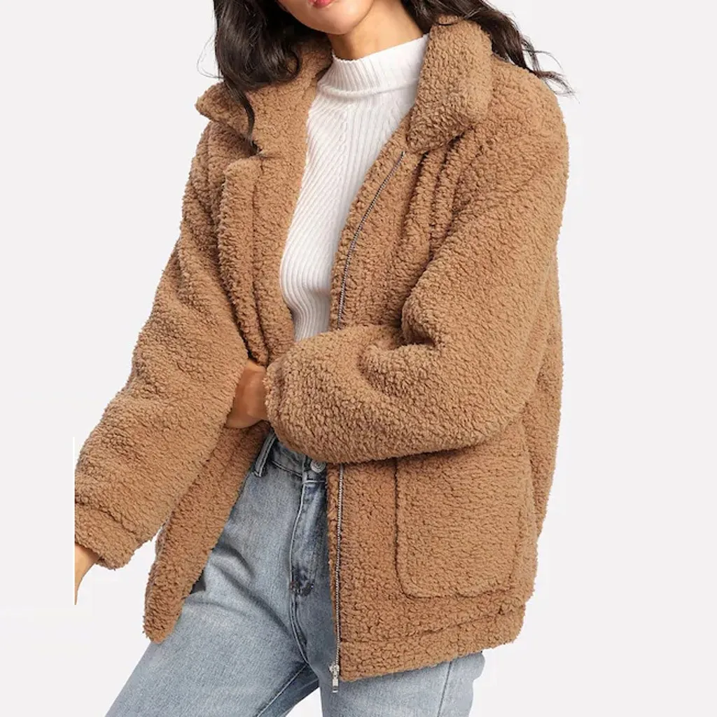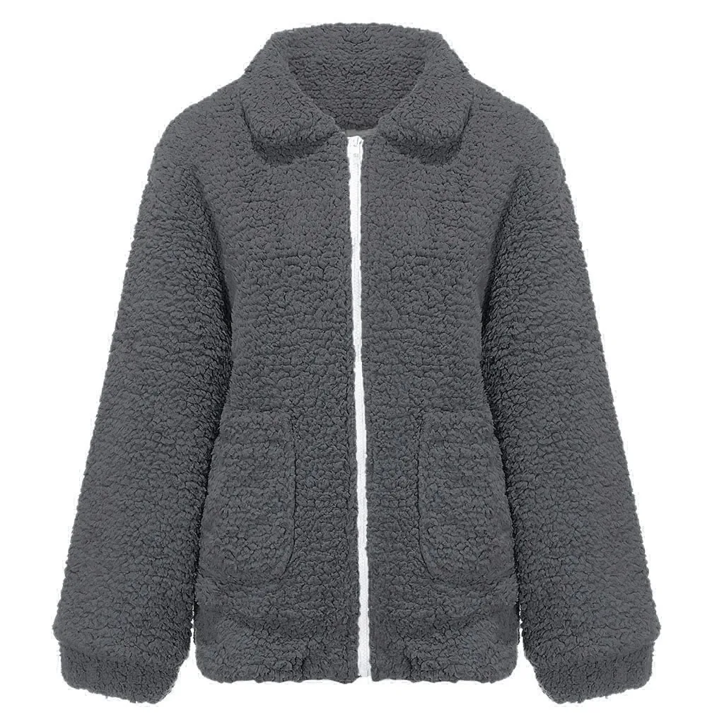 Женская теплая плюшевая куртка на молнии верхняя одежда в стиле панк с карманами - купить