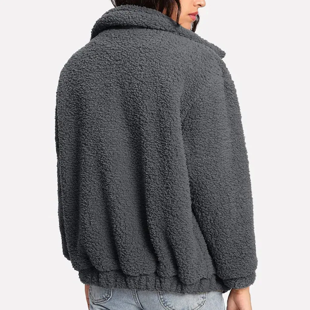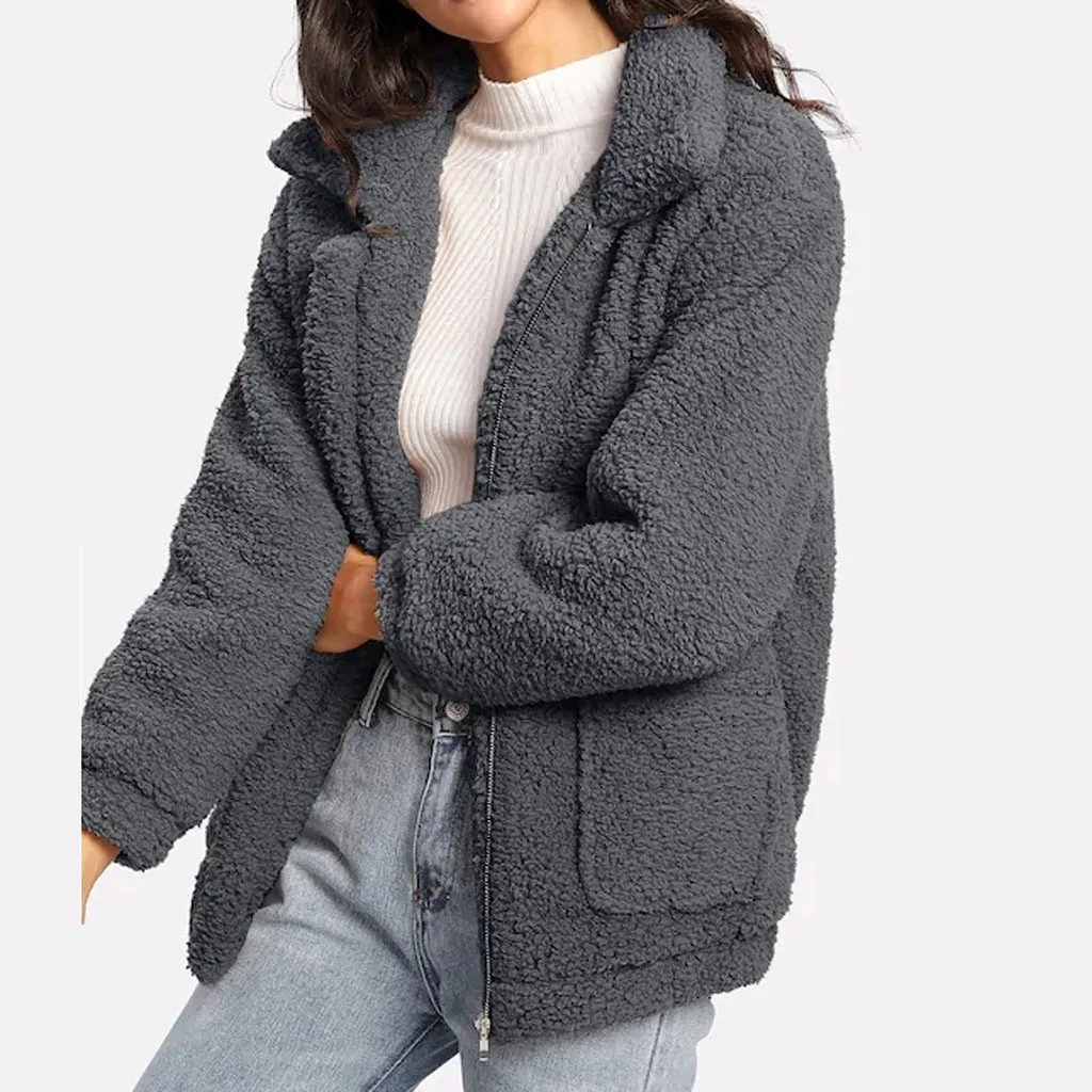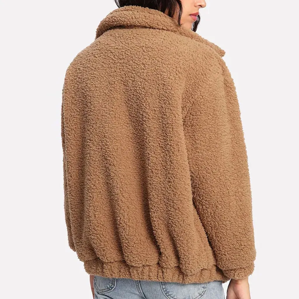 Женская теплая плюшевая куртка на молнии верхняя одежда в стиле панк с карманами - купить