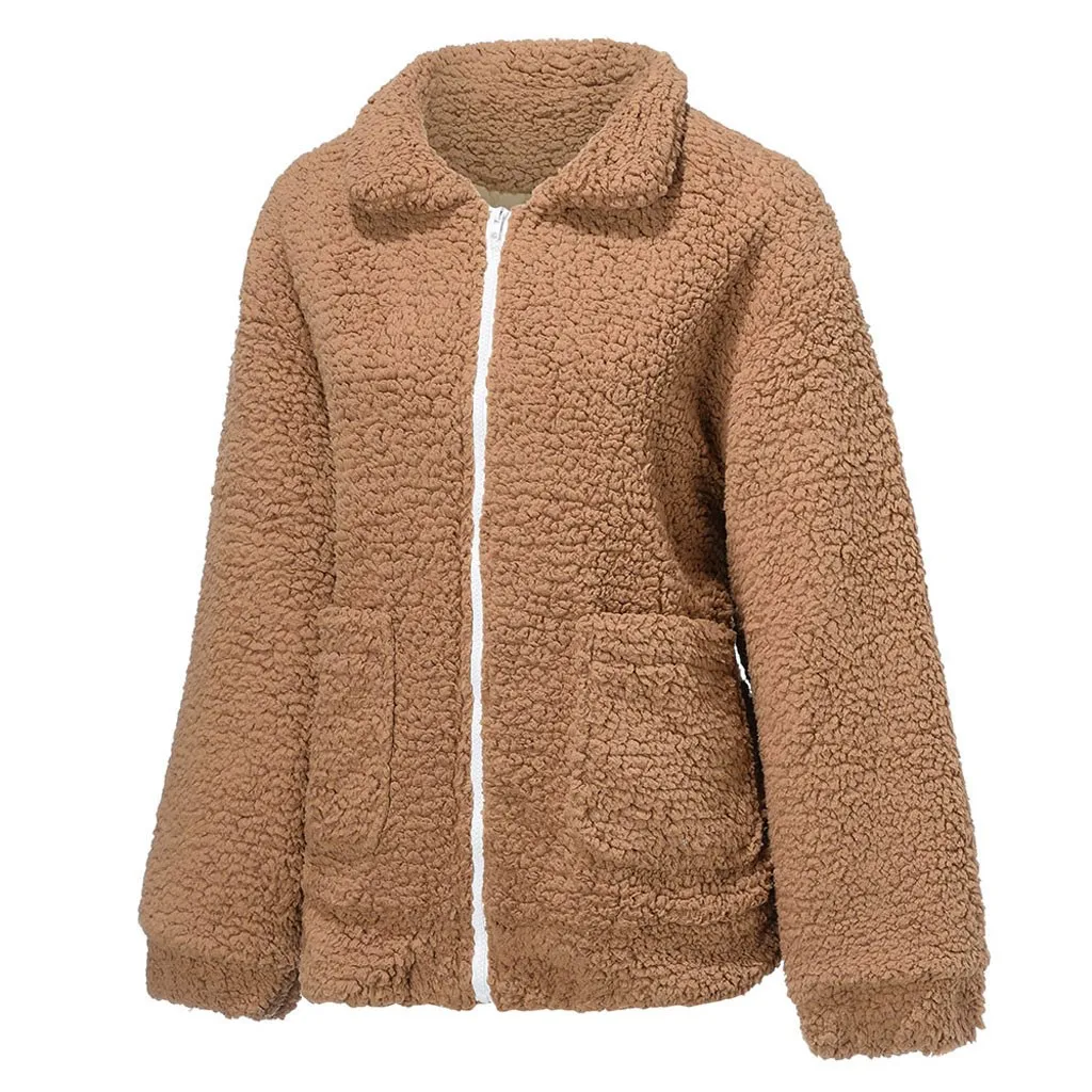 Женская Повседневная теплая куртка на молнии с карманами, однотонное пальто с длинными рукавами