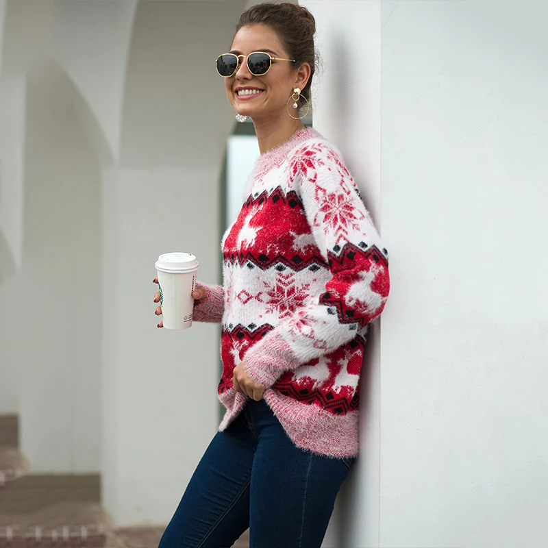 EVERAFTER 2020 Рождественский свитер женский классический теплый мягкий вязаный - купить