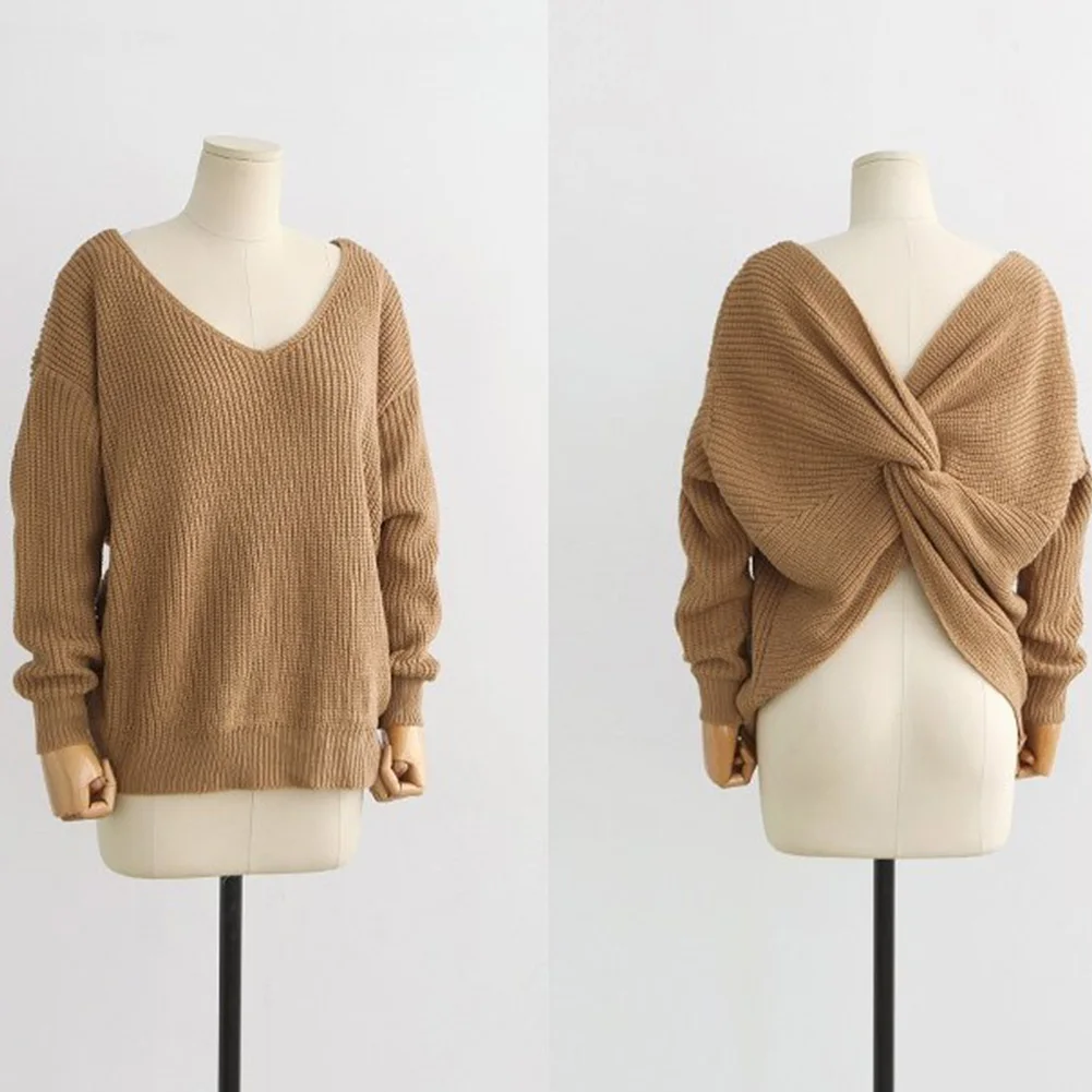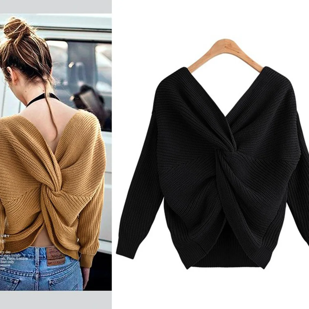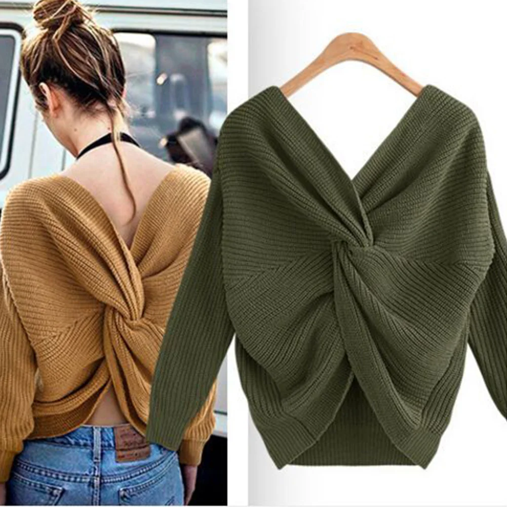 Купить Модные 6 видов цветов V образным вырезом свитер с крученой спинкой Для женщин
