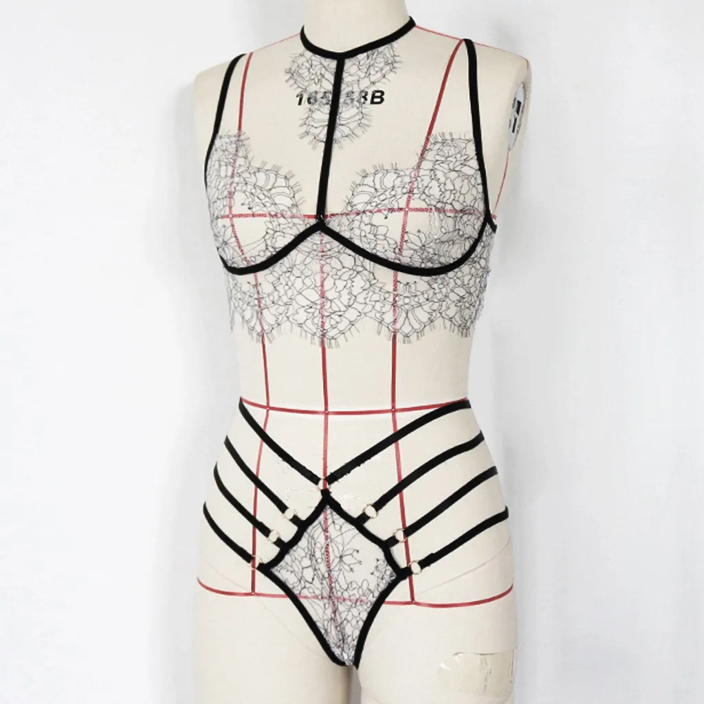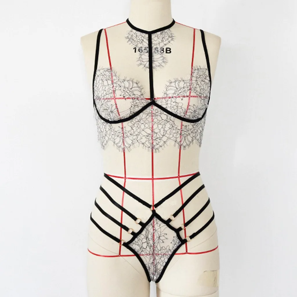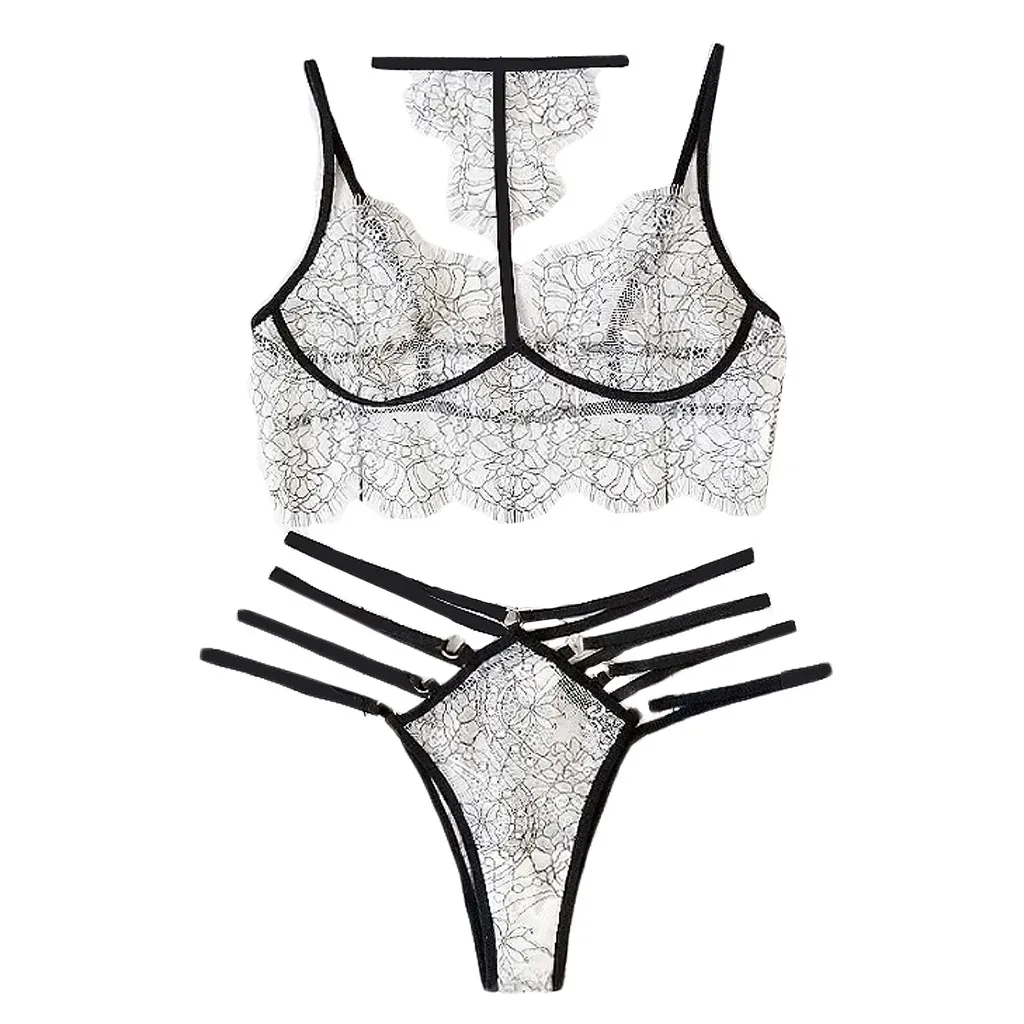 Женский сексуальный кружевной комплект нижнего белья с вышивкой, бюстгальтер с лямкой на шее, комплект нижнего белья