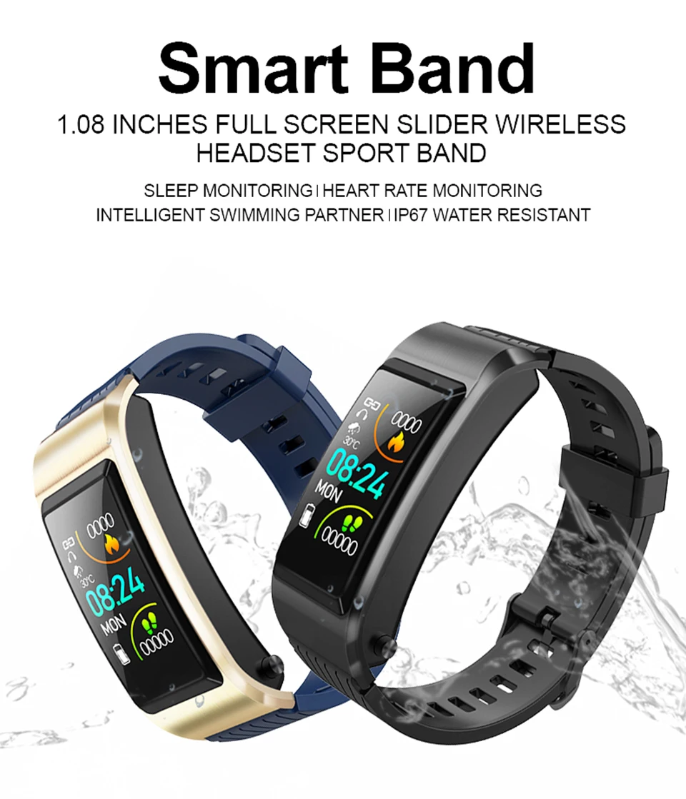 Купить Band Smart Wristband Bluetooth 5.0 Talk Cordless Headphones Fitness Bracelet Color Screen Watch Activity Tracker | Электроника