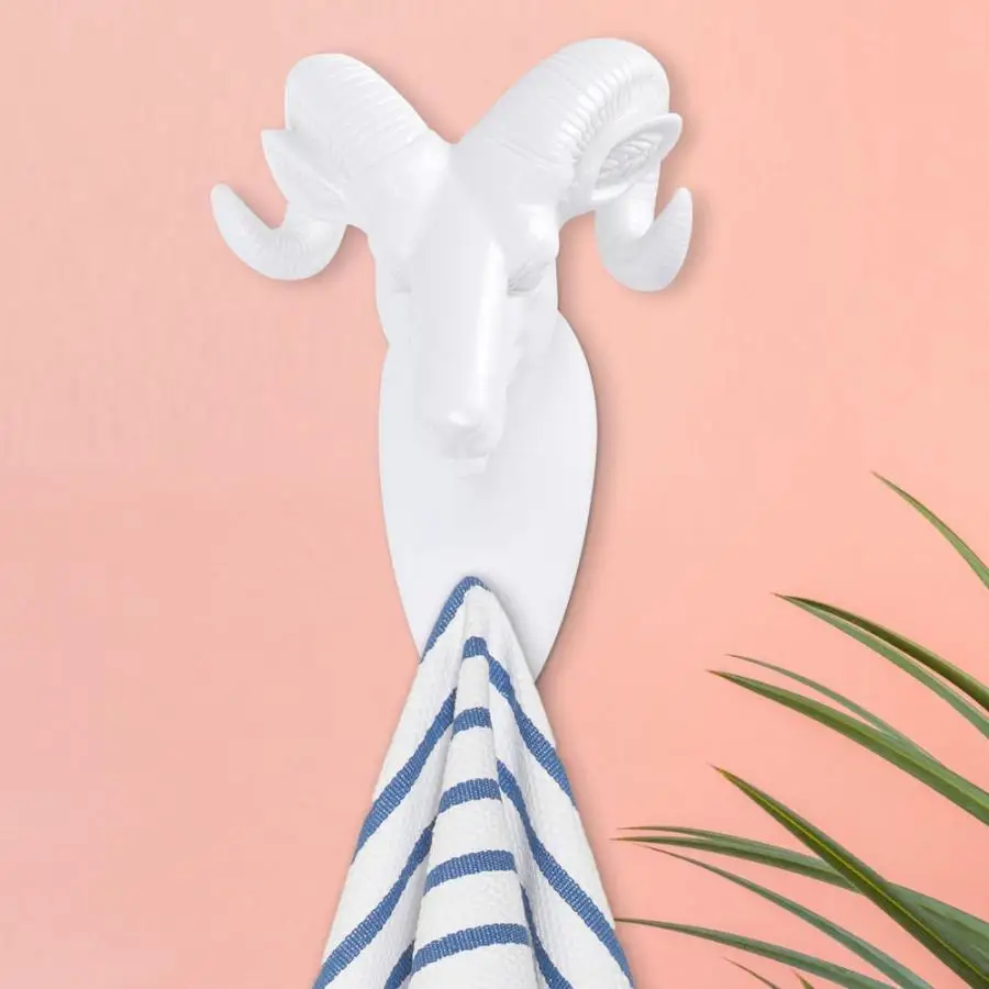 Купить Настенная вешалка для ванной комнаты с головой животного белая в форме козла