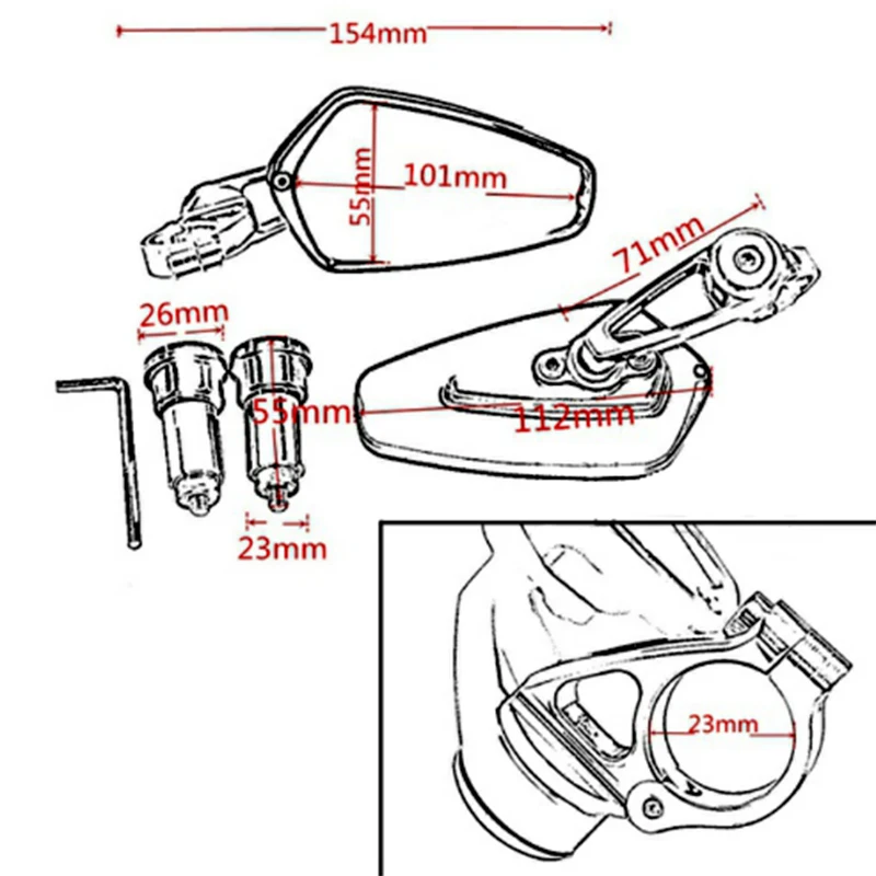 ОписаниеУниверсальные зеркала заднего вида 22 мм 7/8 "для Suzuki dl650 gn250 gn125 gs500 sv650 bandit 1200 650 600 400