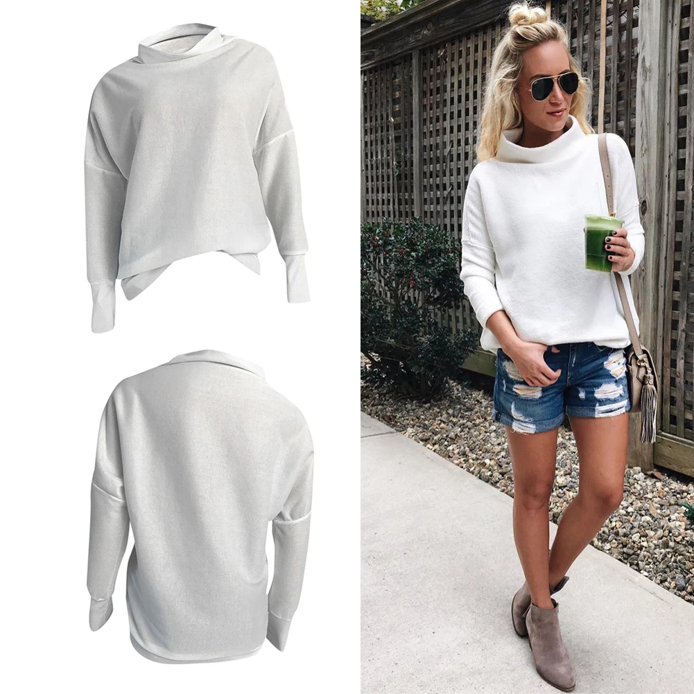 Купить Модный простой женский осенне-зимний вязаный свитер с высоким воротом Теплый