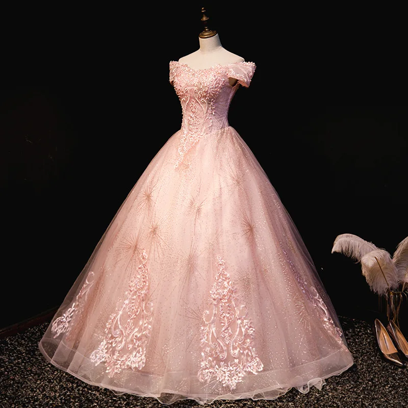 Mrs Win Quinceanera Dresses New Off The Shoulder Party Prom Formal Floor-length Ball Gown Luxury High-end Lace Dress Свадьбы и - купить