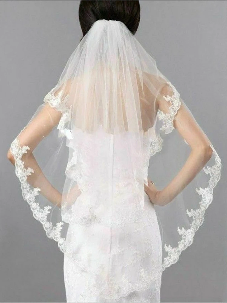2T Детские Свадебные вуали Короткие аппликации белого цвета/цвета слоновой кости - купить