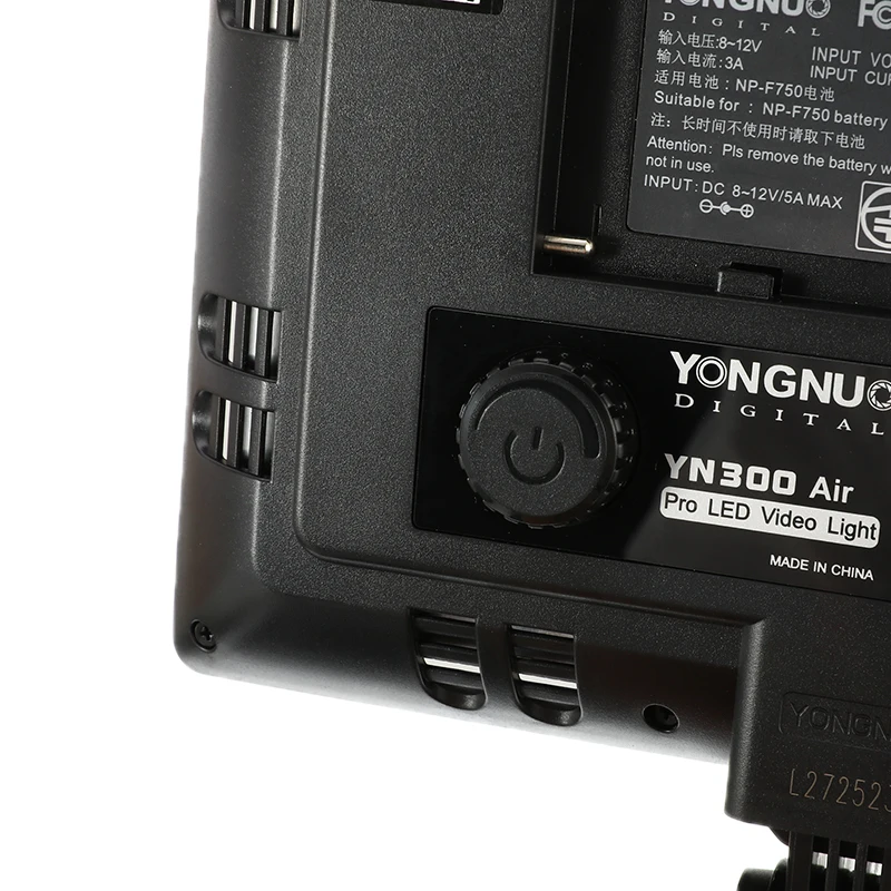 YN300 Air поддерживает использование NP-F литиевой батареи или внешнего питания 8 в, 5 А постоянного тока.
